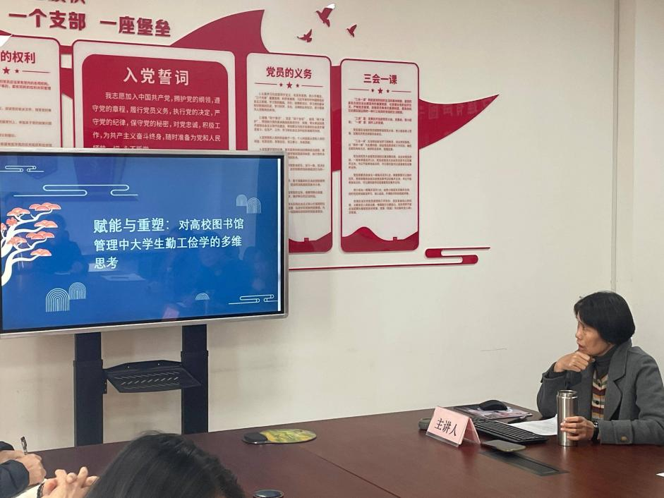 根据图书馆“业务赋能交流成长”馆员系列培训活动安排,12月1日下午在图书馆楼五楼会议室举办了2025年第九期业务培训会。本期培训由学府校区默秀红老师以“赋能与重塑:对高校图书馆管理中大学生勤工俭学的多维思考”为题展开分享,图书馆全体馆员参加培训。