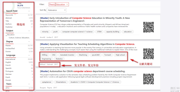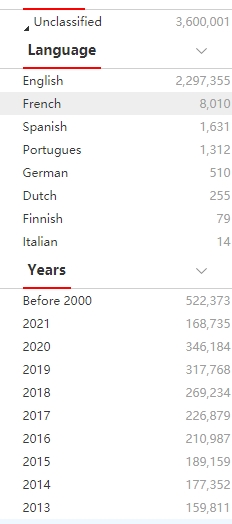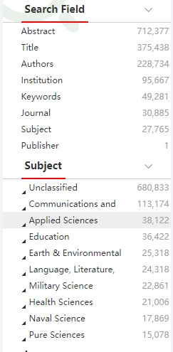 可以按照检索点、学科、语种、年限等聚合项实现二次检索。